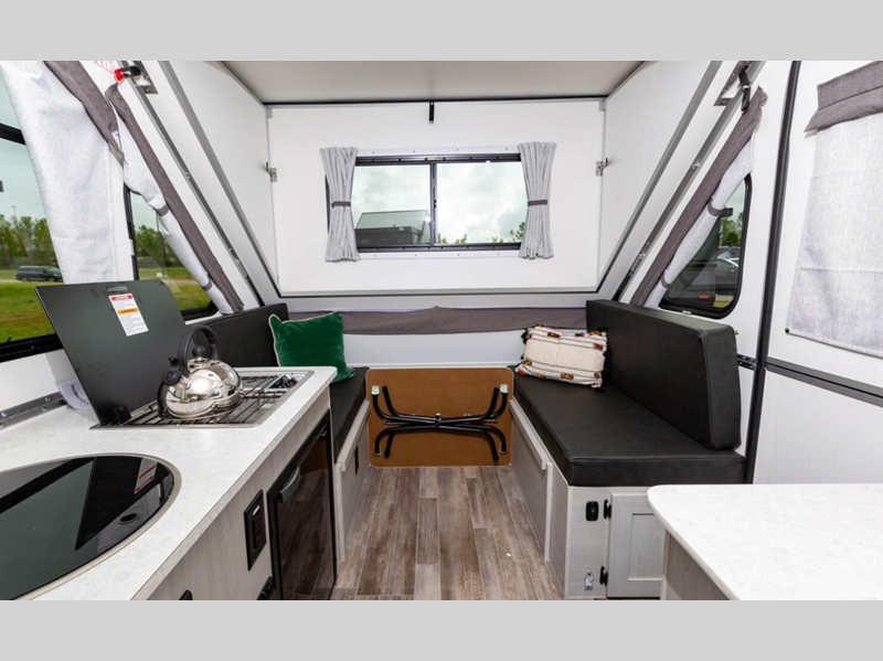 Sleeps 3 Length 15 ft Ext Width 6 ft 6 in Ext Height 5 ft 4 in Hitch Weight 160 lbs GVWR 3000 lbs Dry Weight 1810 lbs Fresh Water Capacity 11 gals Tire Size 14" Furnace BTU 18000 btu Available Beds Two Twin Beds Refrigerator Type 12V Refrigerator Size 3.2 cu ft Cooktop Burners 2 Axle Count 1 Similar Floorplans